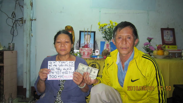 * Có rất nhiều anh em TPB đã Cụt cả hai tay nhưng vui làm sao và cảm kích làm sao khi hiểu được rằng …. nơi đất khách quê người đã có biết bao nhiêu là đôi tay mạnh mẽ kiên trì trong những công việc làm khó nhọc để kiếm ra được đồng tiền , và đã cắt xén tiện nghi cá nhân , tằn tiện sao cho có được đồng tiền gởi về biếu tặng cho anh em chúng tôi trong tình thương vô điều kiện . Chính đây và từ đây chúng tôi đã có được những viên thuốc tốt để điều trị dứt bệnh , có những miếng ăn ngon dinh dưỡng cho sức khỏe , có được những miếng tôn lợp sửa lại mái nhà tránh được mưa nắng .